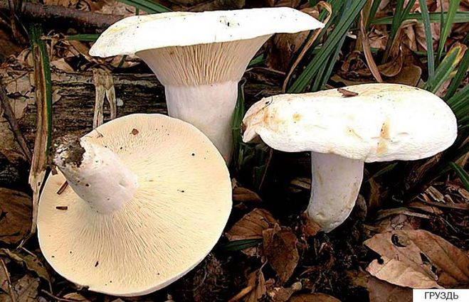 Ядовитых грибов среди груздей нет, однако с особой осторожностью следует относиться к таким их видам: груздь перечный (Lactarius piperatus), скрипица (Lactarius vellereus) и груздь камфорный (Lactarius camphoratus). Внешне скрипица и груздь перечный очень похожи на сухой груздь, т.е. они молочного цвета, имеют сухие шляпки без пушистого края. Отличаются эти грибы более высокими ножками, а также они выделяют млечный сок, который окрашивает перечный груздь в синий или зеленый цвет, а скрипицу – в красно-коричневый. Таких груздей следует остерегаться.